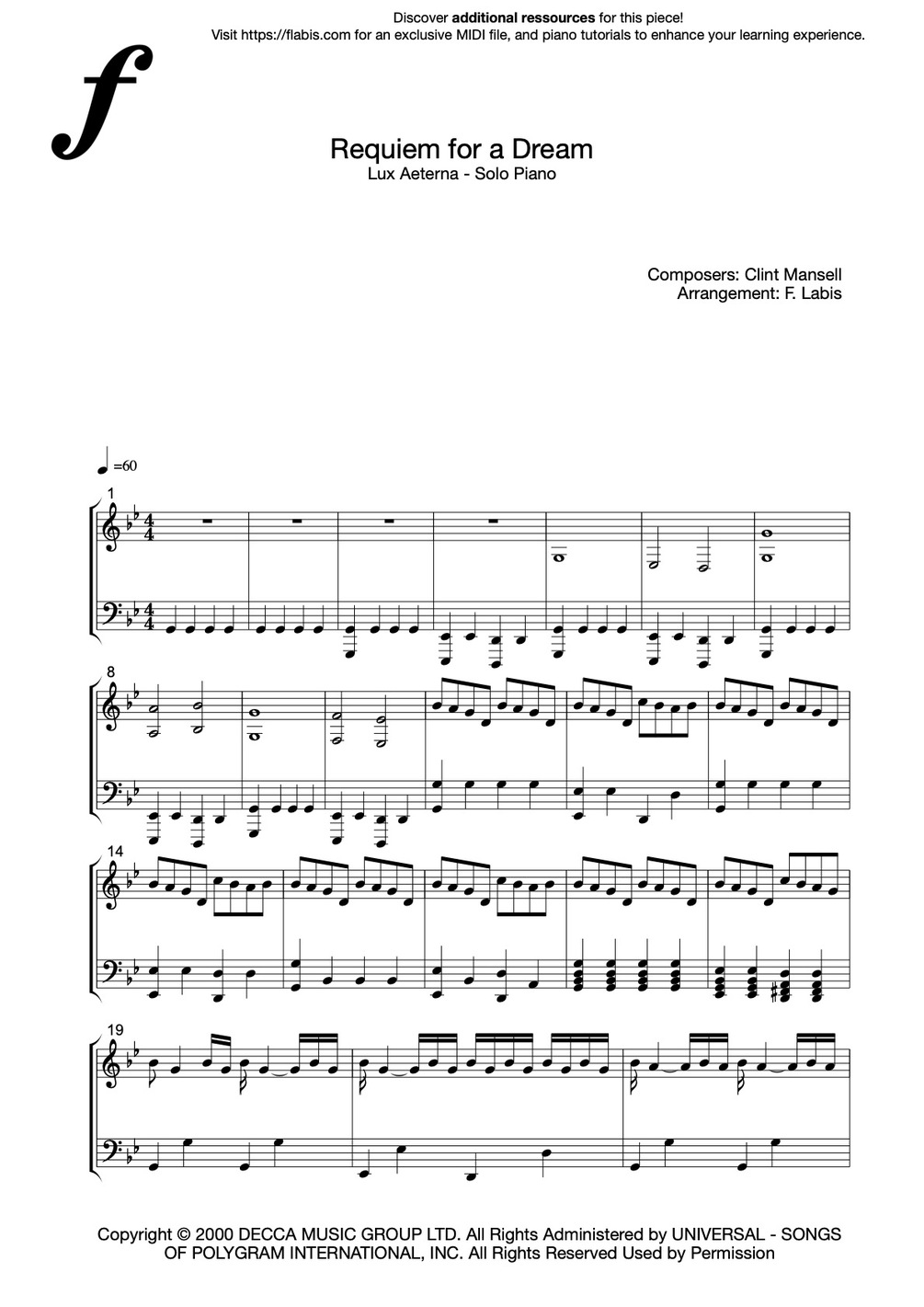 Découvrez le Kit ULTIMATE pour Requiem for a Dream de Clint Mansell, comprenant deux versions complètes : une version solo et une version pour piano à quatre mains. Ce kit est conçu pour s’adapter à tous les niveaux, de débutant à avancé, avec des outils interactifs et progressifs pour maîtriser chaque aspect du morceau.