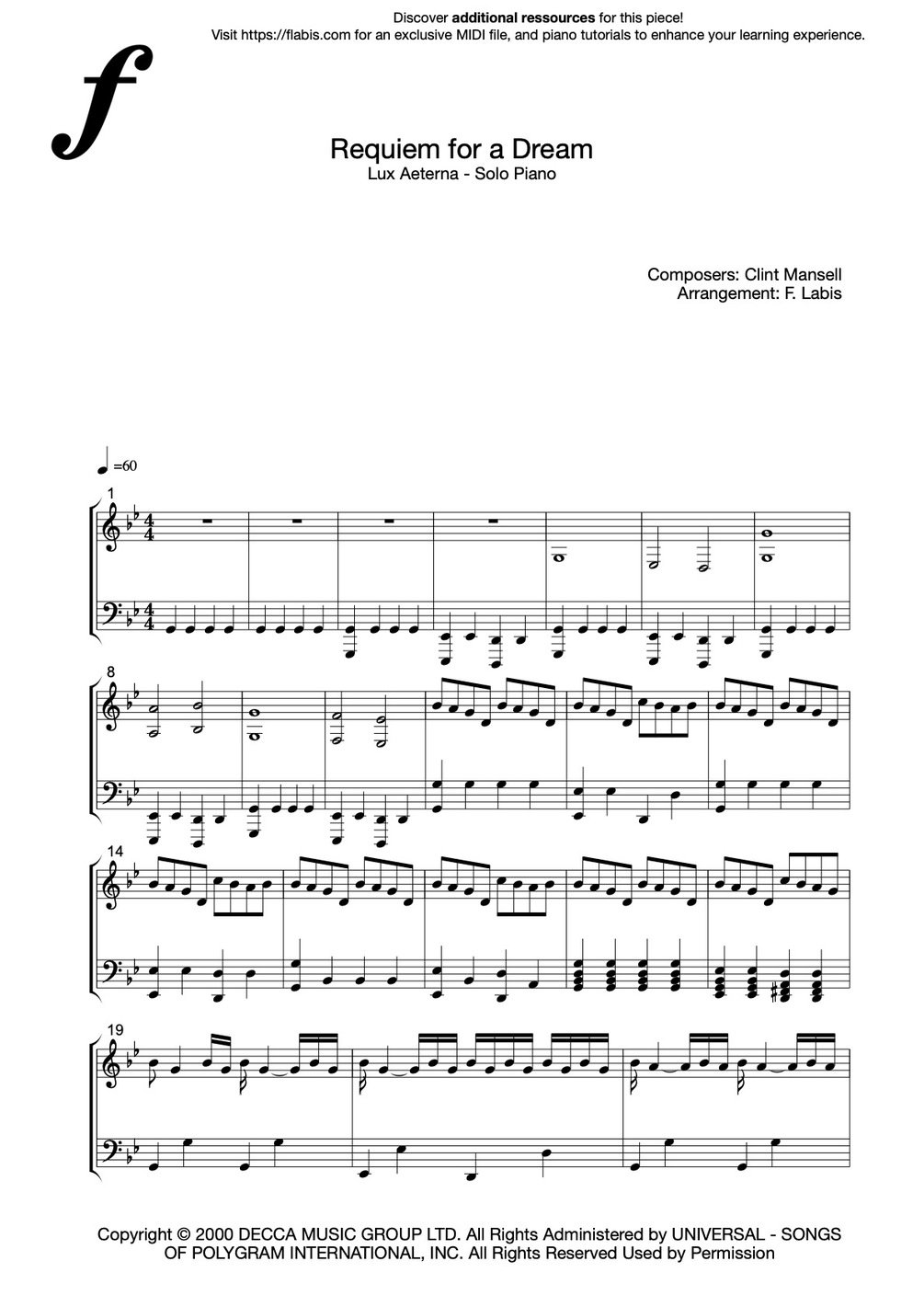 Discover the ULTIMATE Kit for Requiem for a Dream by Clint Mansell, featuring two complete versions: a solo version and a four-hands piano version. This kit is designed to accommodate all skill levels, from beginner to advanced, with interactive and progressive tools to master every aspect of the piece.